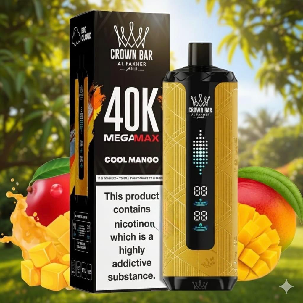 Al Fakher Crown Bar Mega Max 40000 Puffs Disposable Vape is the ultimate choice for those who crave long-lasting satisfaction, premium flavor, and a smooth vaping experience. Designed for heavy users and flavor chasers, this powerful disposable combines high-capacity performance with Al Fakher’s legendary flavor expertise. Whether you’re relaxing at home or on the move, the Crown Bar Mega Max delivers consistent vapor, rich taste, and reliable power with every puff.