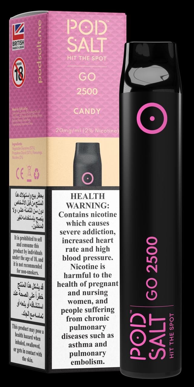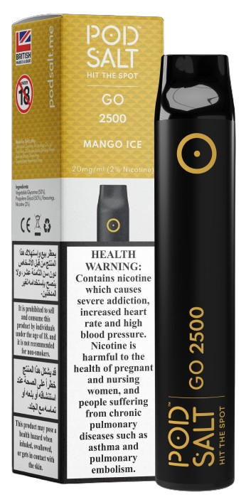 Flavours: Pod Salt GO 2500 comes in many flavour options such as Blue Ice, Candy, Cantaloupe Ice, Fresh Mint, Grape, Mango Ice, Strawberry, and Watermelon Breeze